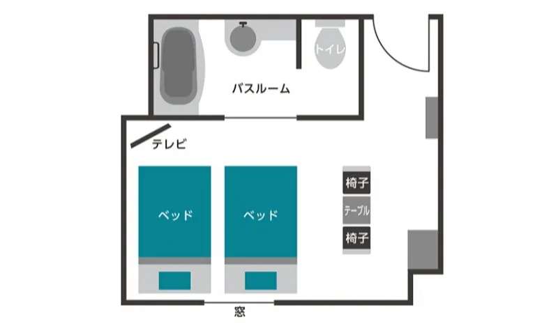スタンダードツインより客室面積が広く、スタッキングベッドご利用で最大3名様までご宿泊いただけます。バスルームとトイレが独立しており、ファミリー、お友達同士でのご利用に便利です。ベッド下のスペースは荷物の収納としてご利用いただけます。