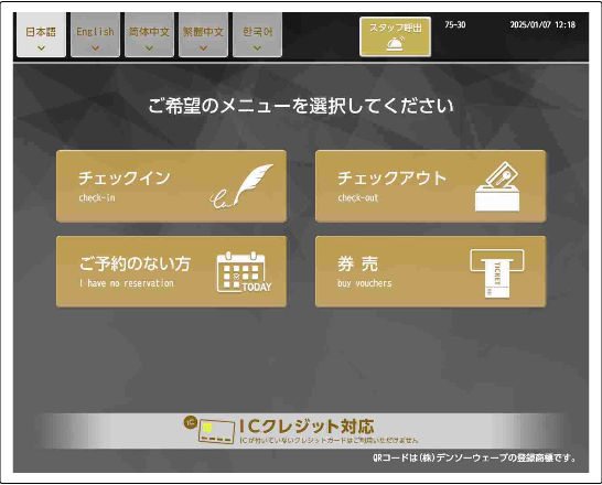 Select your language and press Check-in.