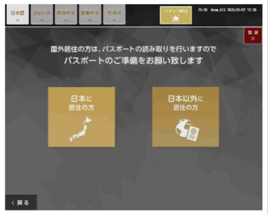 そうでなければ、右のボタンを押し、パスポートをスキャンしてください。