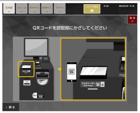 画面の表示に従い、QRコードをご提示ください。