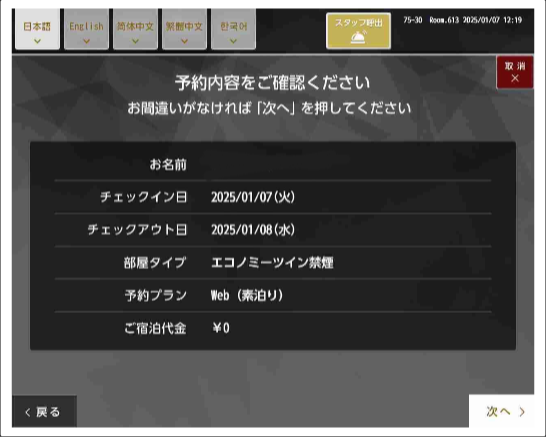 照会ができない場合は、恐れ入りますがフロントまでお知らせくださいませ。