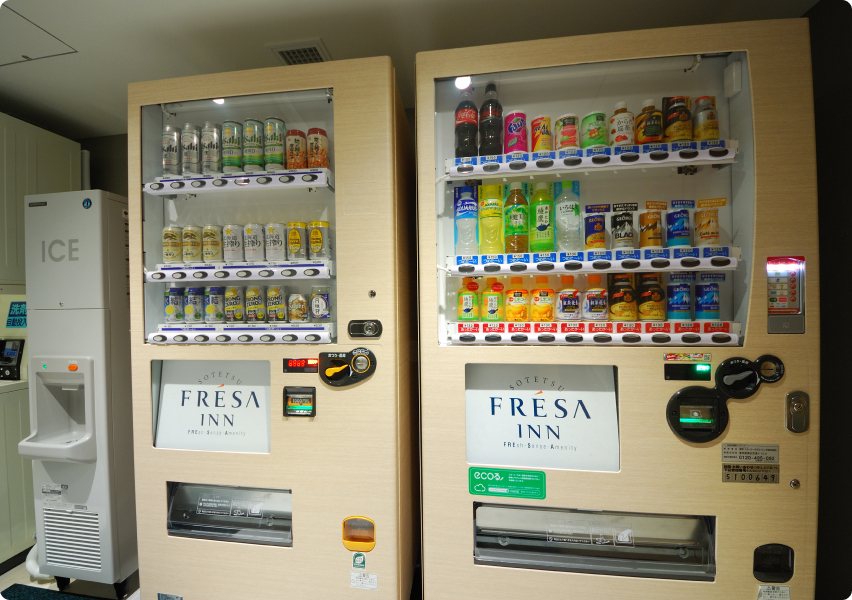 アルコール、ソフトドリンクの自動販売機をご用意しております。客室でのお休み前の一杯に、ぜひご利用ください。