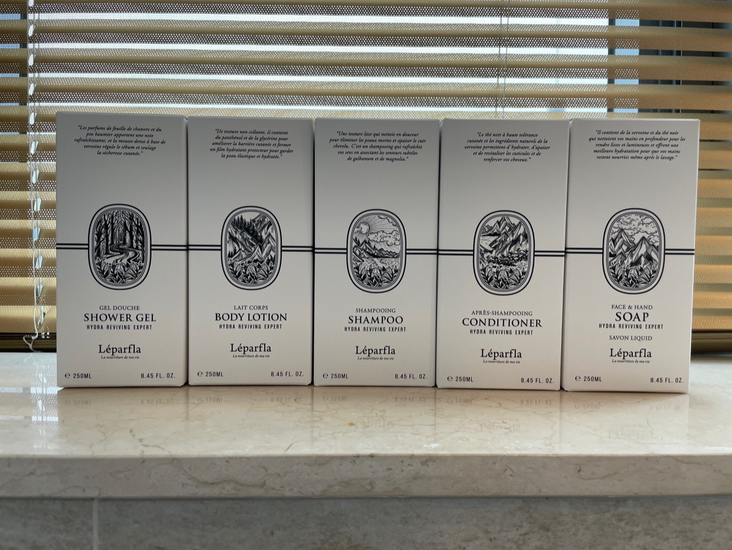 ボディローション、シャワージェル、シャンプー、コンディショナー、石鹸など5種類の製品の中からお好みの品目を予約人数分お選びいただけます。