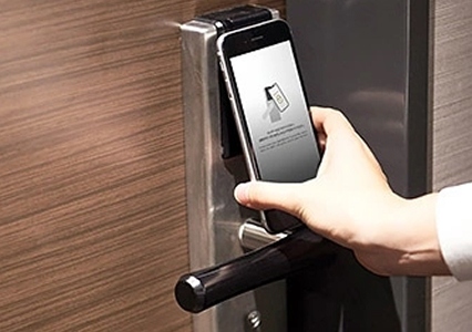 スマホでお部屋の鍵を開けられます。また、ホテルへの入館(深夜1時~5時)やエレベーターの作動にも、ルームキーの代わりにご利用いただけます。ルームキーを持ち歩く手間がなくなり、お気軽に外出いただけます。