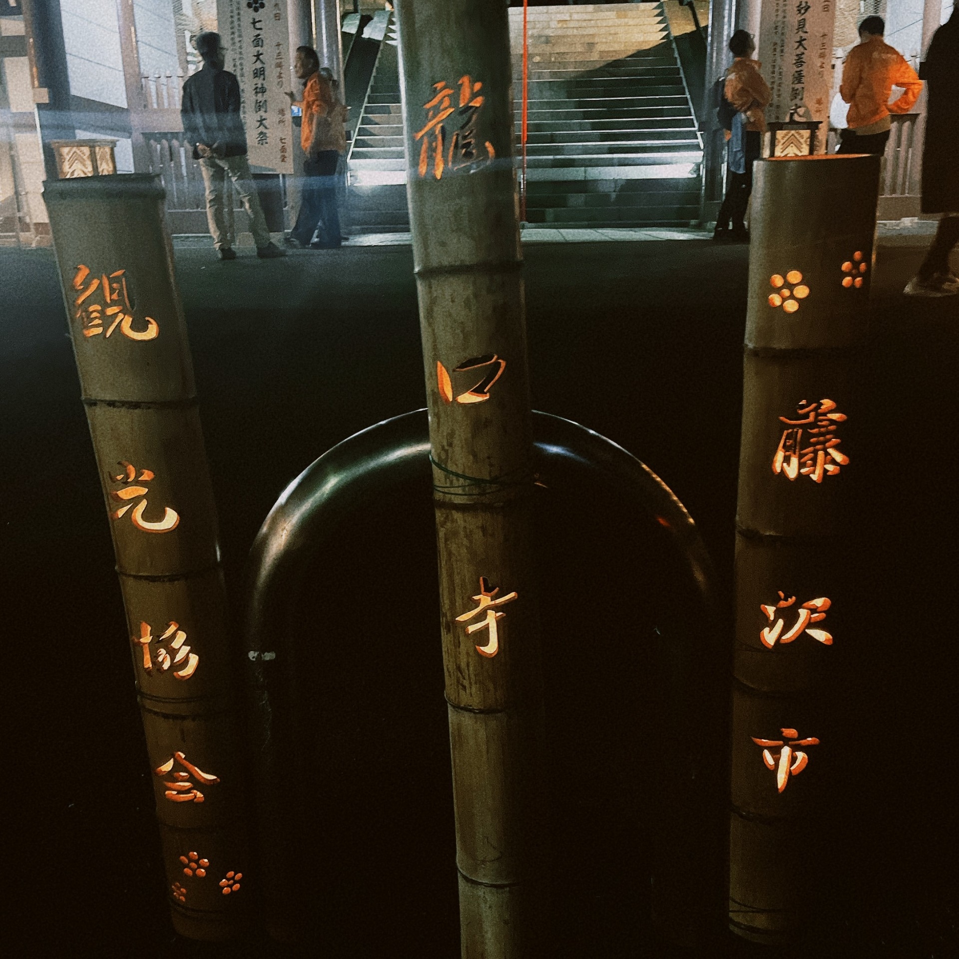 2009年(平成21年)まで行われてきた「灯籠流し」に代わって、2010年(平成22年)より龍口寺の境内で行われている「竹灯籠」。
