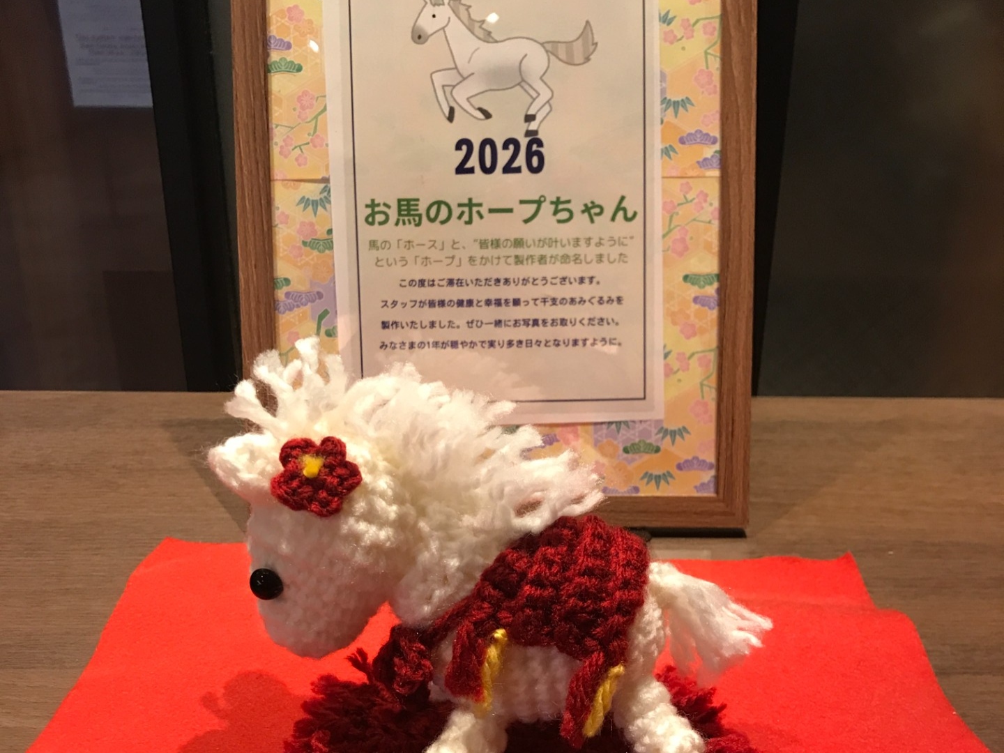 当ホテルのマスコット、干支のあみぐるみはお馬の「ホープ」ちゃん🐎