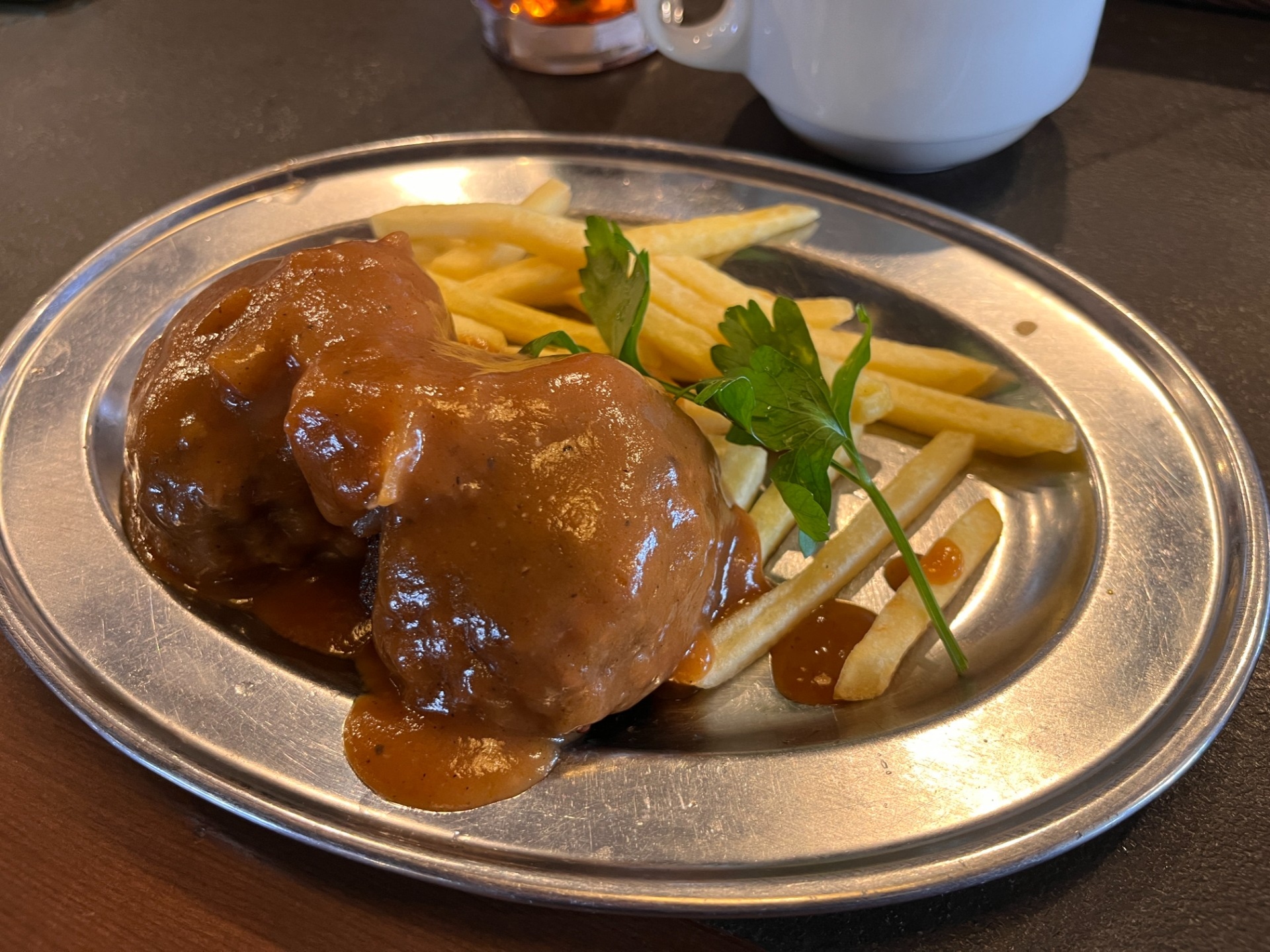 ハンバーグももちろんおいしい!ソースはオニオンソースがおススメです!(個人的に)