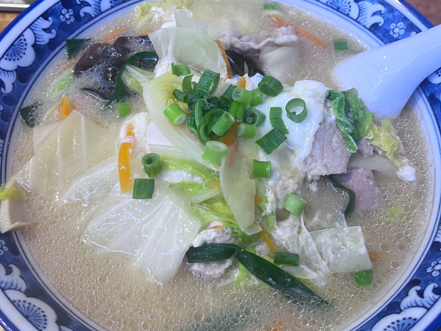 看板メニューの豚汁麺が、ほっと安らぐ豚汁と、やさしいお味のタンメンを掛け合わせたような、、、是非お酒を飲んだ後に食べてほしい逸品でございます。