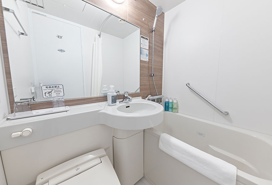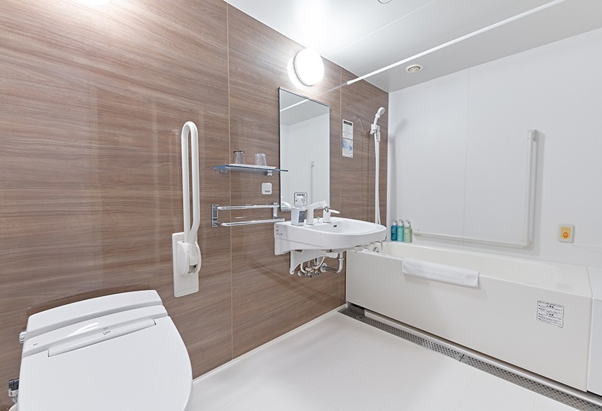 ごゆっくりお過ごしいただけるよう、ゆとりと機能性を両立させたバリアフリーの客室です。
