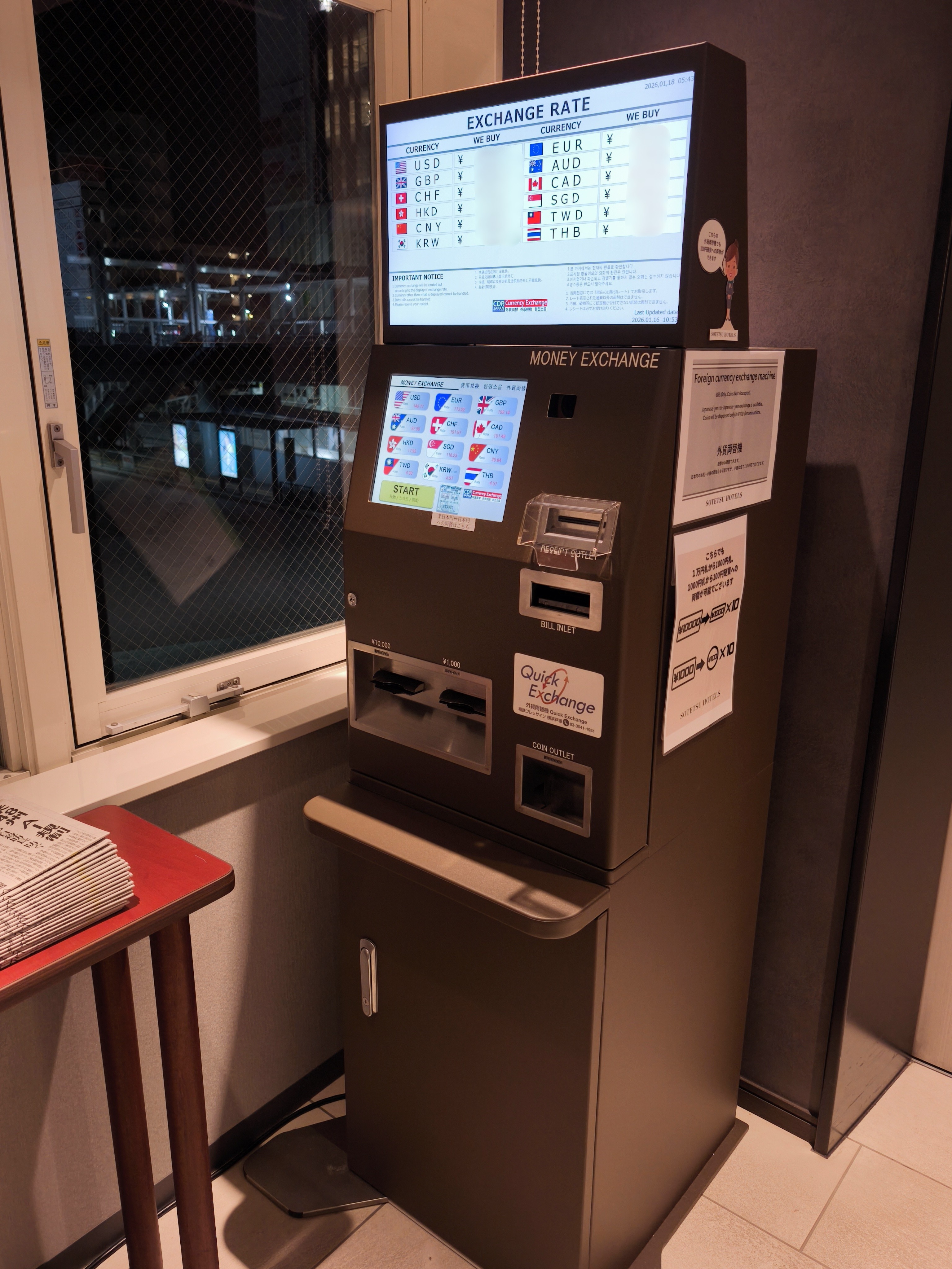 さて、11月末頃に当館では外貨両替機を導入いたしました!