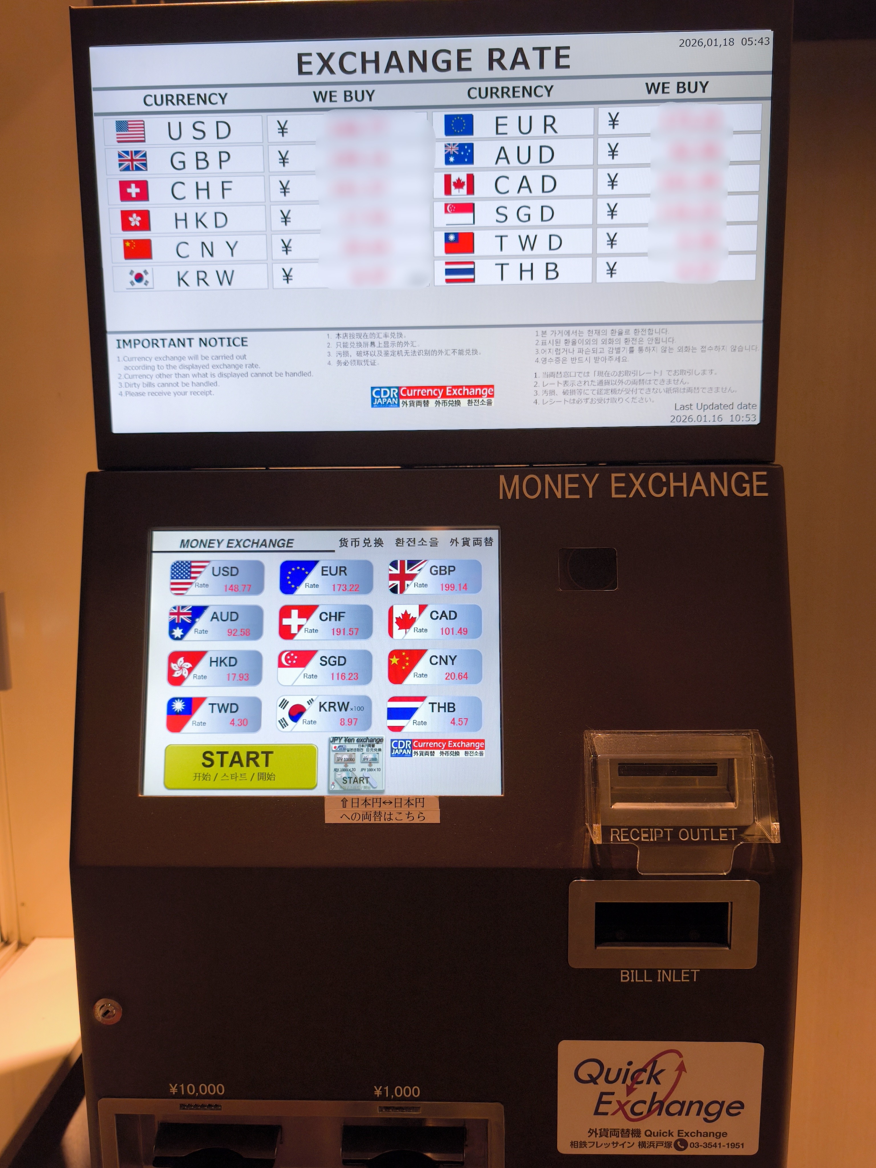 一時帰国で利用されるお客様にも便利な外貨両替機、ご活用いただけますと幸いでございます。
