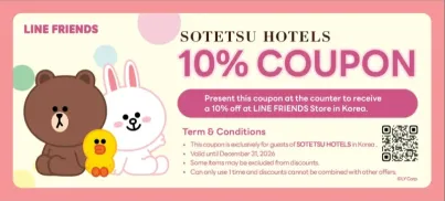 弘大明洞聖水仁寺洞など、韓国の4か所にあるラインフレンズストアでショッピングを楽しみ、クーポンを提示すると10%割引の特典を受けられます。