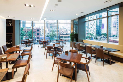 解放感あふれるレストランでゆったりと朝食+サラダバーをお楽しみ頂けます。