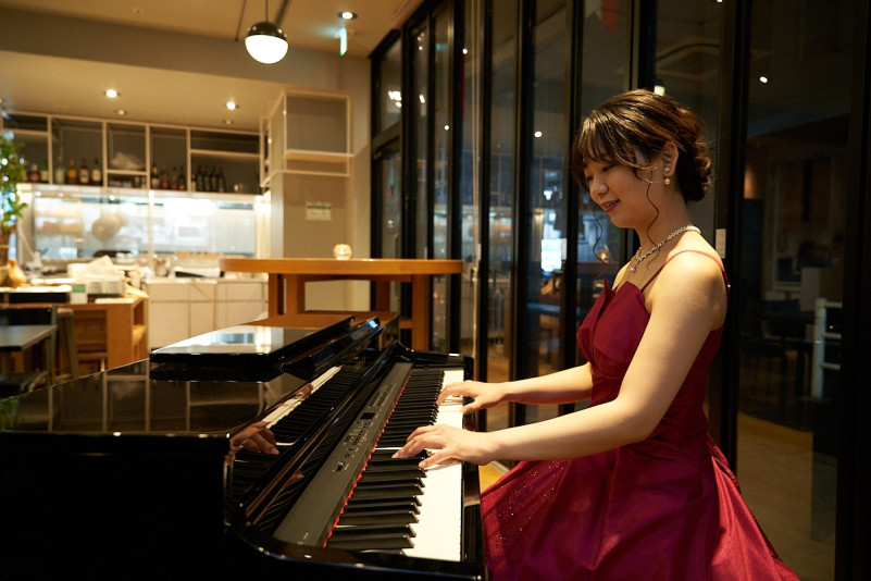 ピアニスト・町田莉佳さん、植木藍子さん、角田貴子さんによる生演奏を聴きながら、美味しいお食事とお酒をお楽しみいただけます。