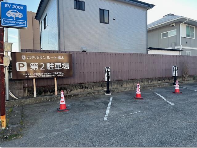 第二駐車場にEV車充電機器を2台設置いたしました。
